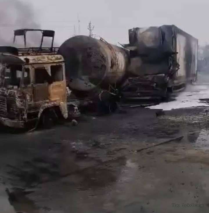 जयपुर-अजमेर हाइवे पर ट्रक-टैंकर की टक्कर से लगी आग, धमाके के साथ... जयपुर-अजमेर हाइवे पर गैस सिलेंडर से भरे ट्रक और टैंकर की टक्कर से भीषण आग लग गई। धमाके के साथ... October 8, 2025